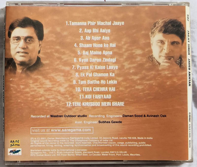 Soz Jagjit Singh-Javed Akhtar Hindi Audio Cd