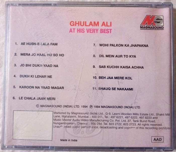 Supreme Collection Ait His Very Best Ghulam Ali Hindi Audio Cd