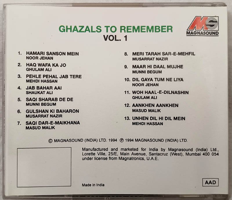 Supreme Collection Ghazals to Remember Vol 1 Hindi Audio Cd