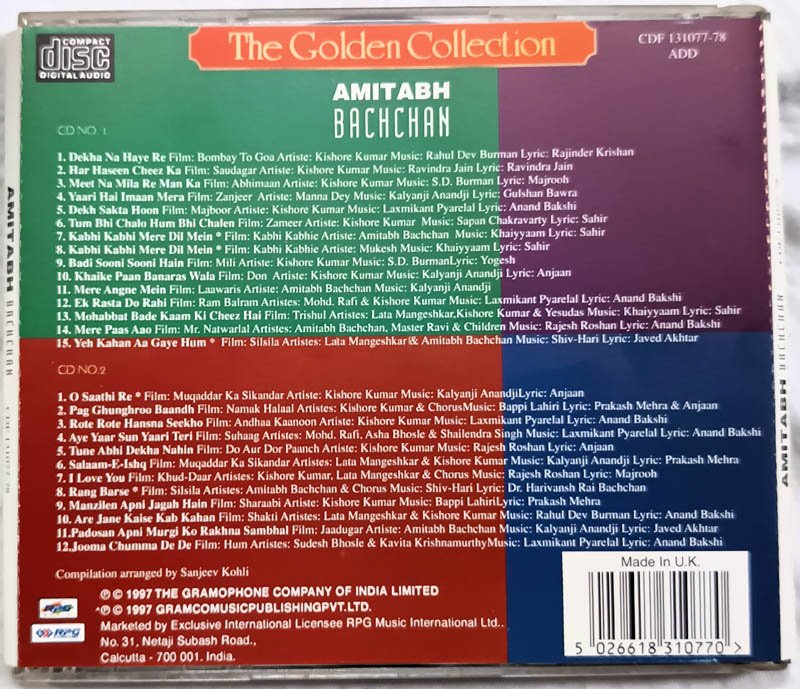 The Golden Collection Amitabh Bachchaan Hindi Audio cd