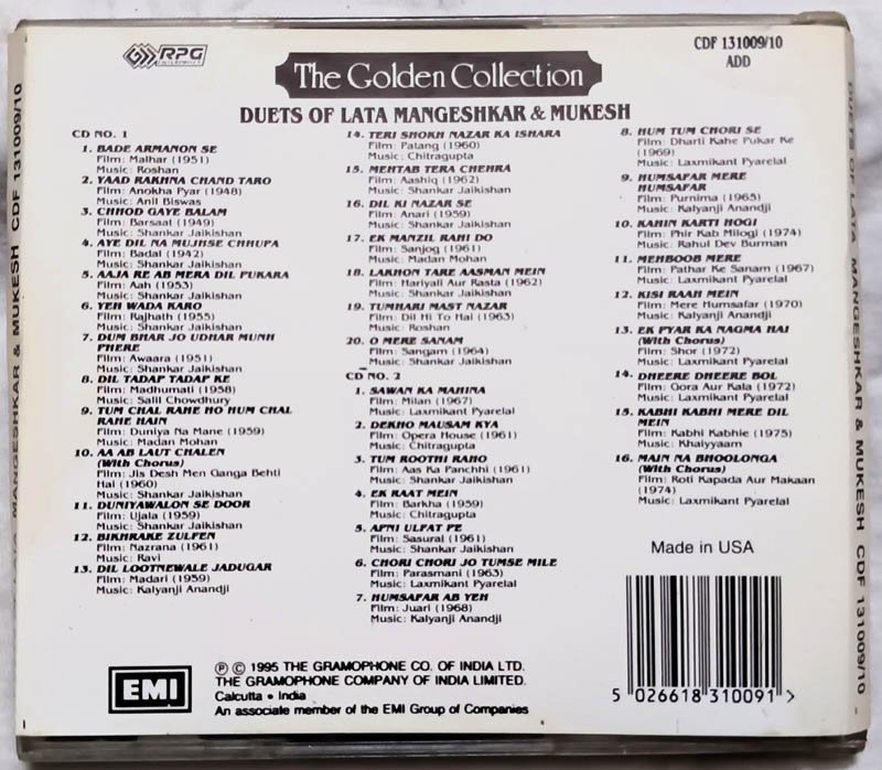 The Golden Collection Duets of Lata Mangeshkar & Mukesh Hindi Audio cd