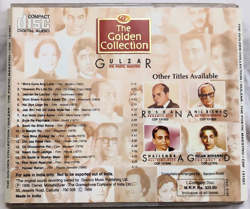 The Golden Collection Gulzar The Poetic Maestro Audio CD