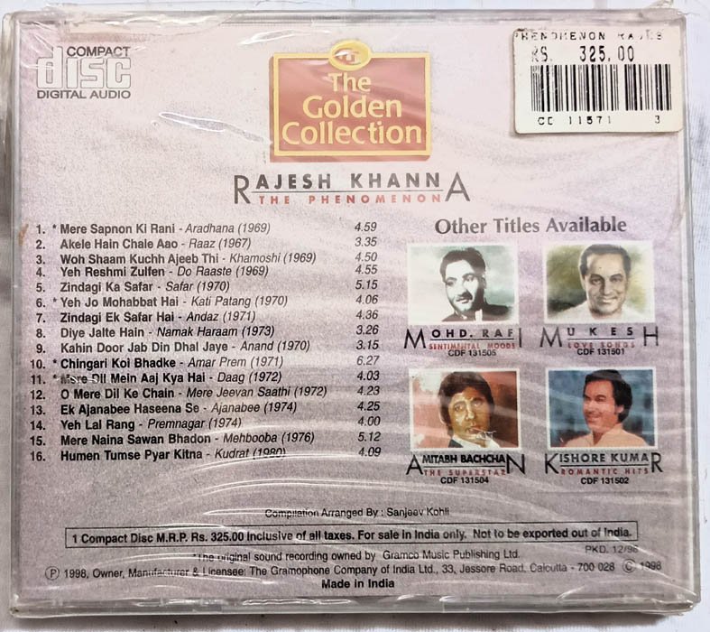 The Golden Collection Rajesh Khanna The Phenomenon Hindi Film Songs Audio CD(Sealed)