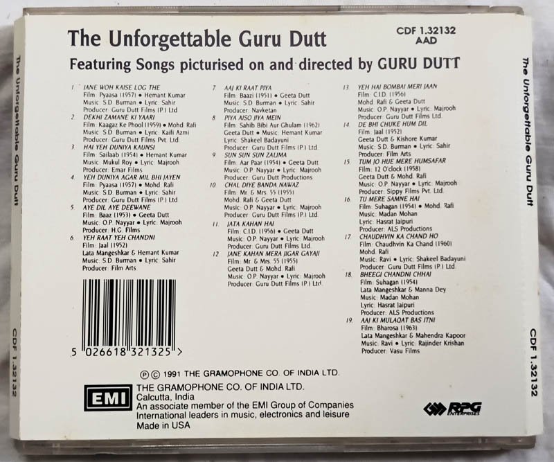 The Unforgettable Guru Dutt Hindi Audio Cd