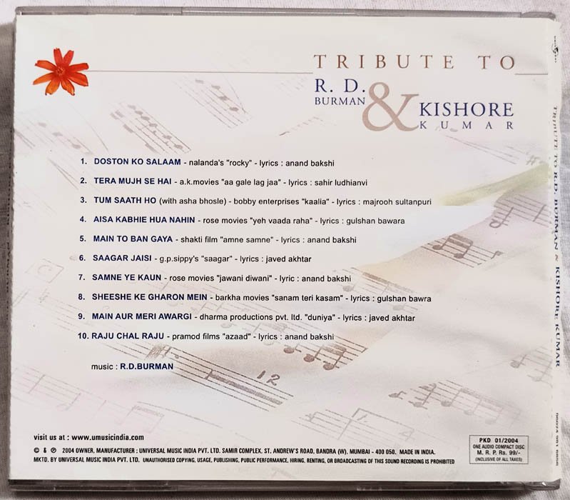 Tribute to R D Burman & Kishore Kumar Hindi Audio cd
