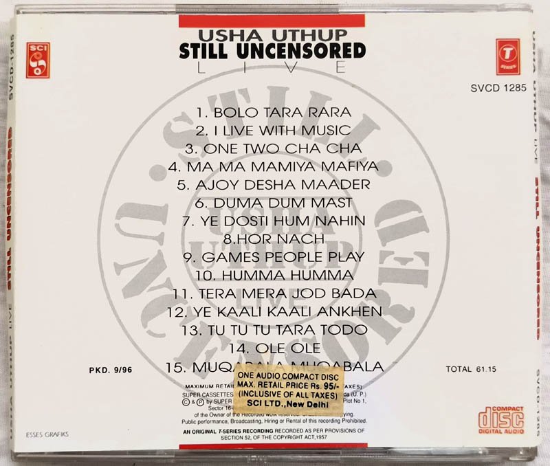 Usha Uthup Still Uncensored Live Hindi Audio CD