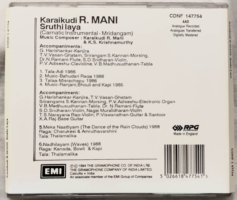 Karaikudi R Mani Sruthi Laya Instrumental Audio cd
