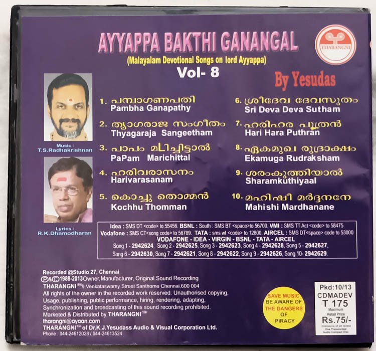 Ayyappa Bakthi Ganangal Vol 8 Malayalam Audio cd By Yesudas