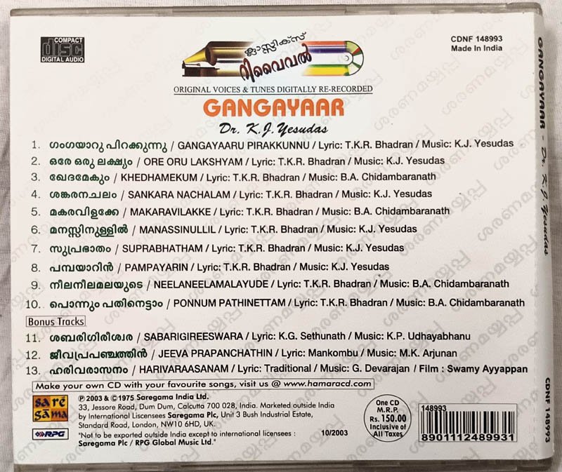 Gangayaar Malayalam Audio cd