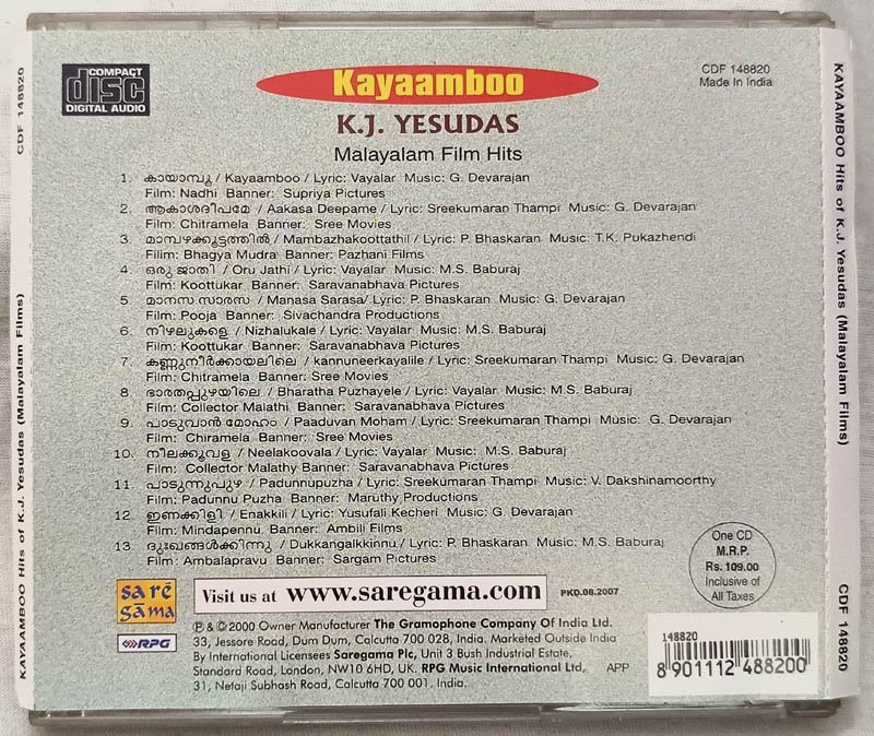 Kayaambo K J Yesudas Malayalam Film Hits Audio cd