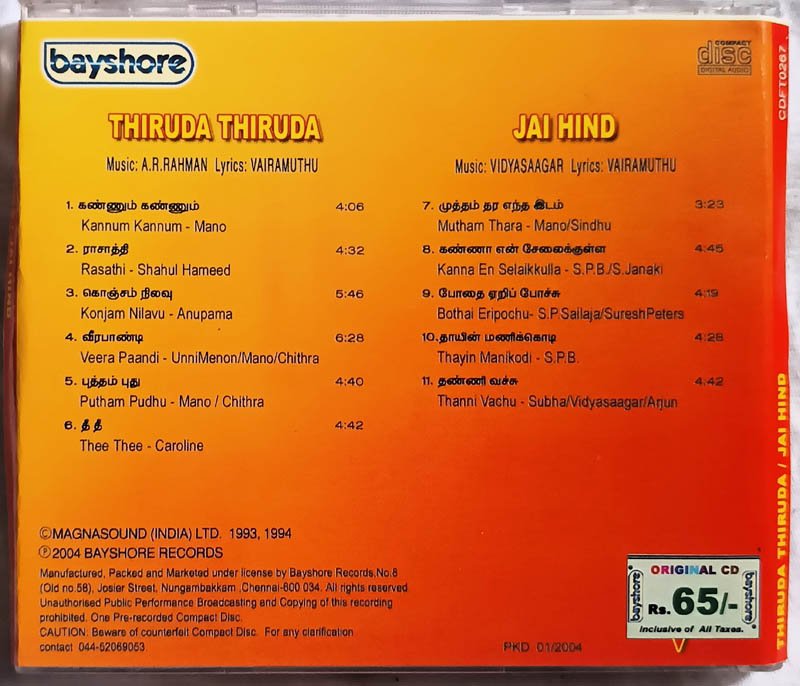 Thiruda Thiruda – Jaihind Tamil Audio CD