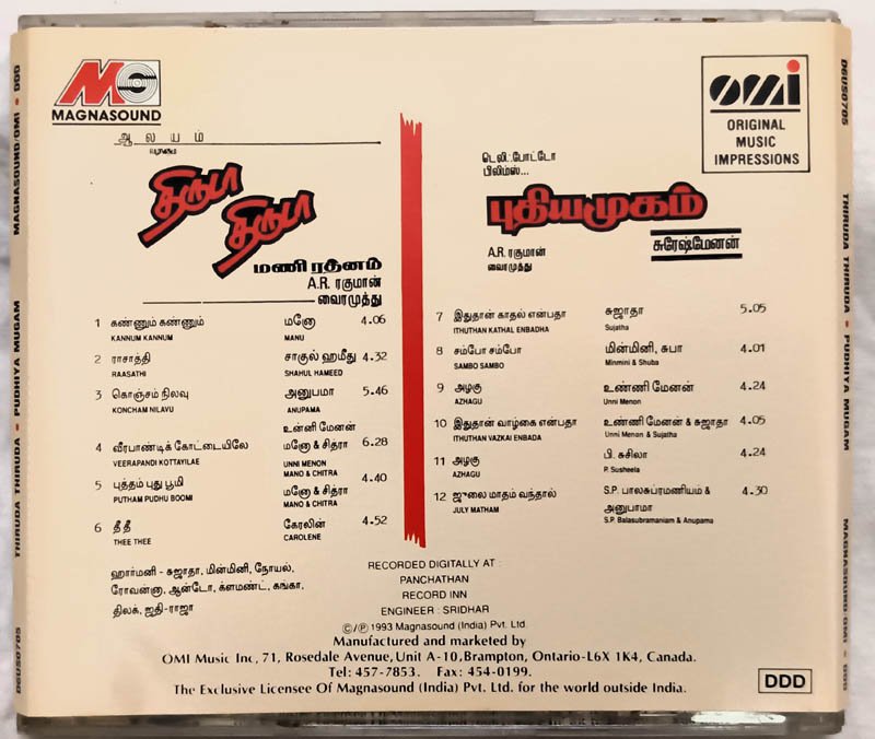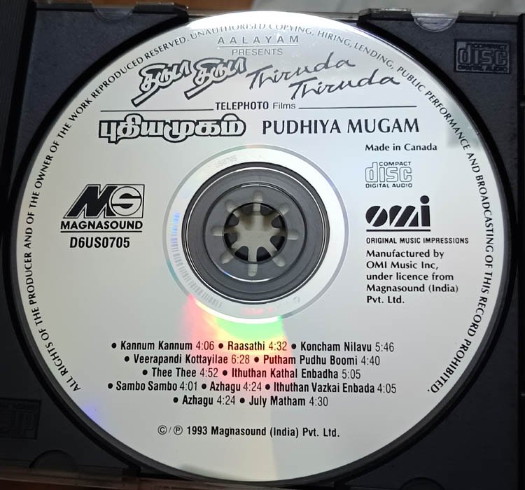 Thiruda Thiruda-Pudhiya Mugam Audio Cd By A R Rahman