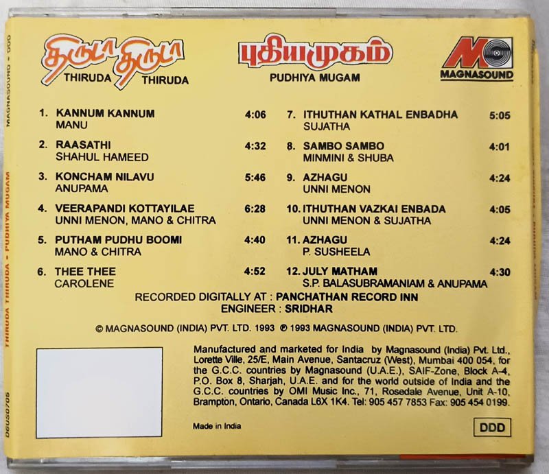 Thiruda Thiruda-Pudhiya Mugam Audio Cd By A R Rahman