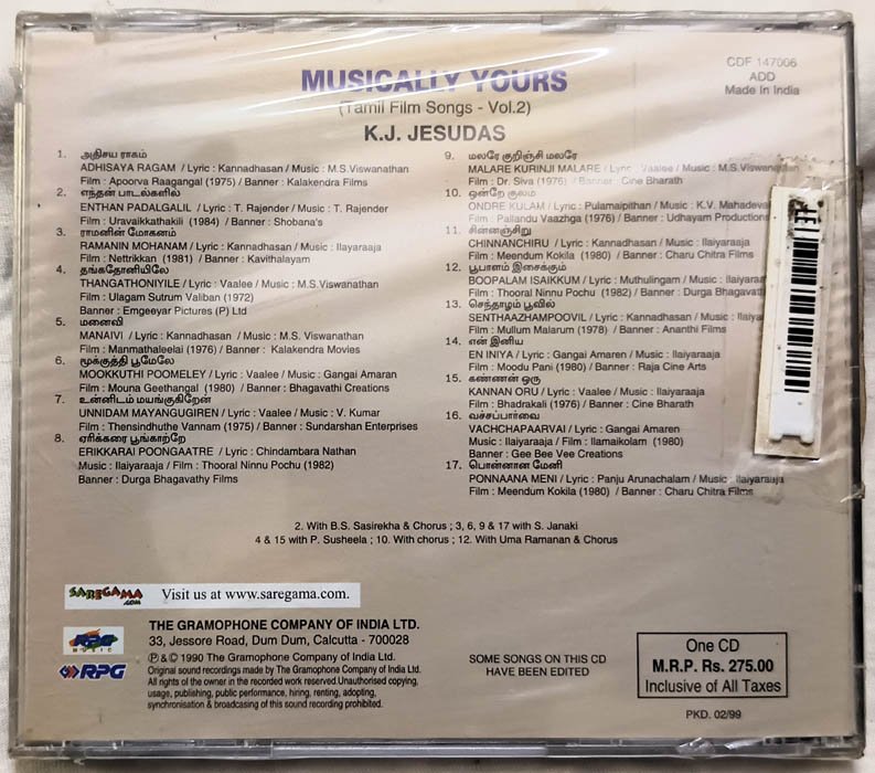 Adhisaya Raagam K J Yesudas Tamil Audio cd (Sealed)