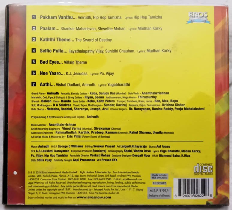 Kaththi Tamil Audio Cd By Anirudh