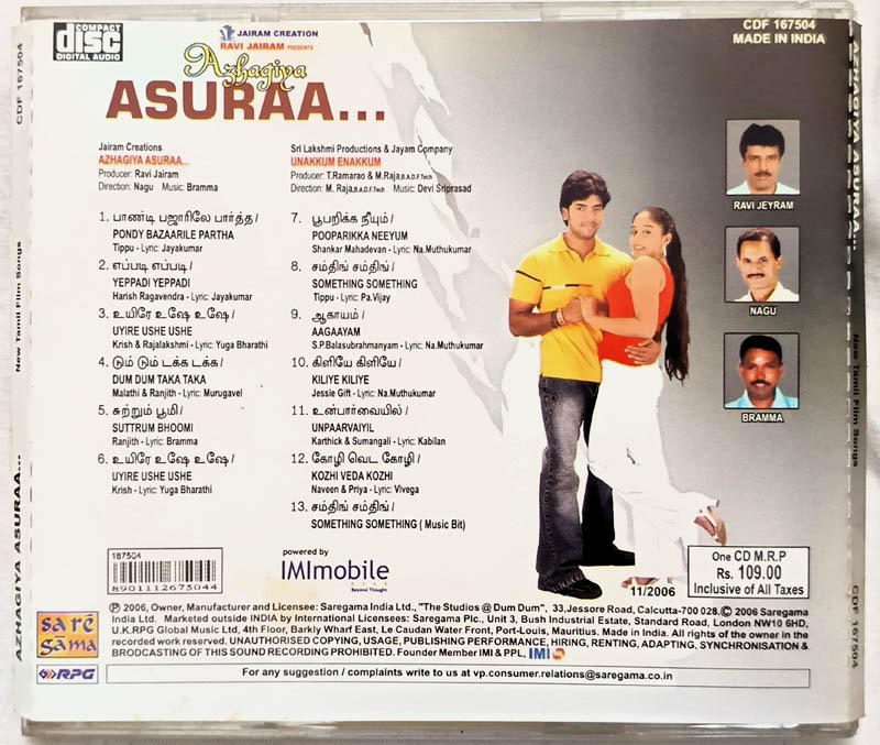Azhagiya Asuraa Tamil Audio Cd By Devi Sriprasad