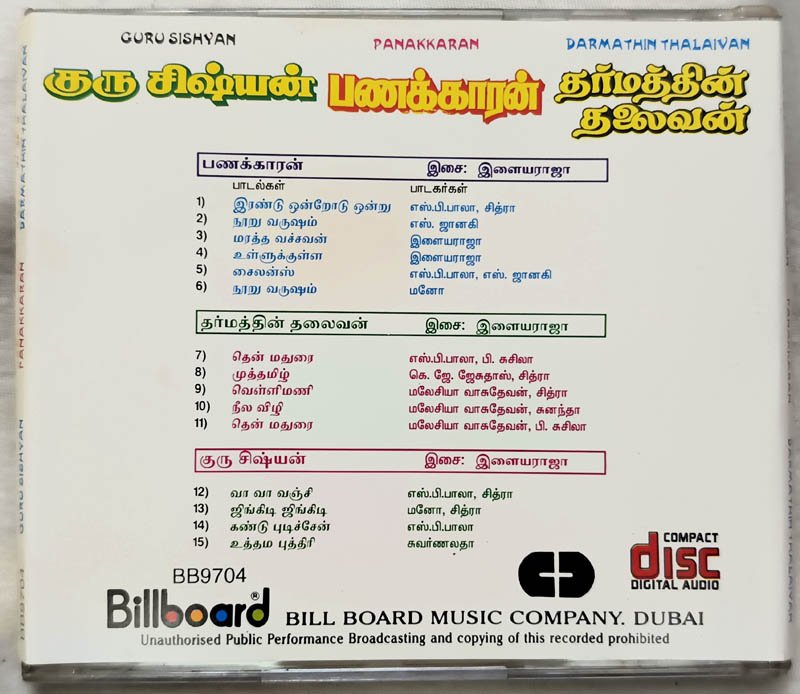 Guru Sishyan – Panakkaran – Dharmathin Thalaivan Tamil Audio cd
