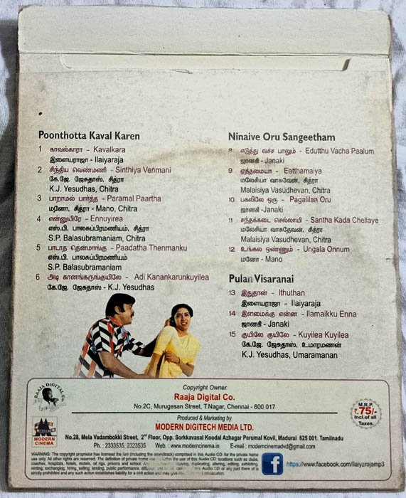 Poonthota Kaval Karen-Ninaive Oru Sangeetham-Pulan Visaranai Tamil Audio Cd