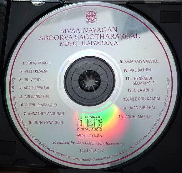 Sivaa-Naayagan-Aboorva Sagotharargal Tamil Audio Cd By Ilaiyaraaja Made In USA