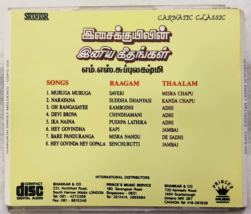 Isaikuyil Sweet Melodies M S Subbulakshmi Audio cd