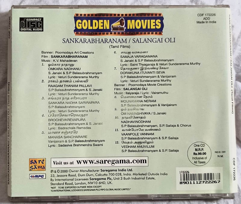 Sankarabharanam Salangai Oli Tamil Audio Cd