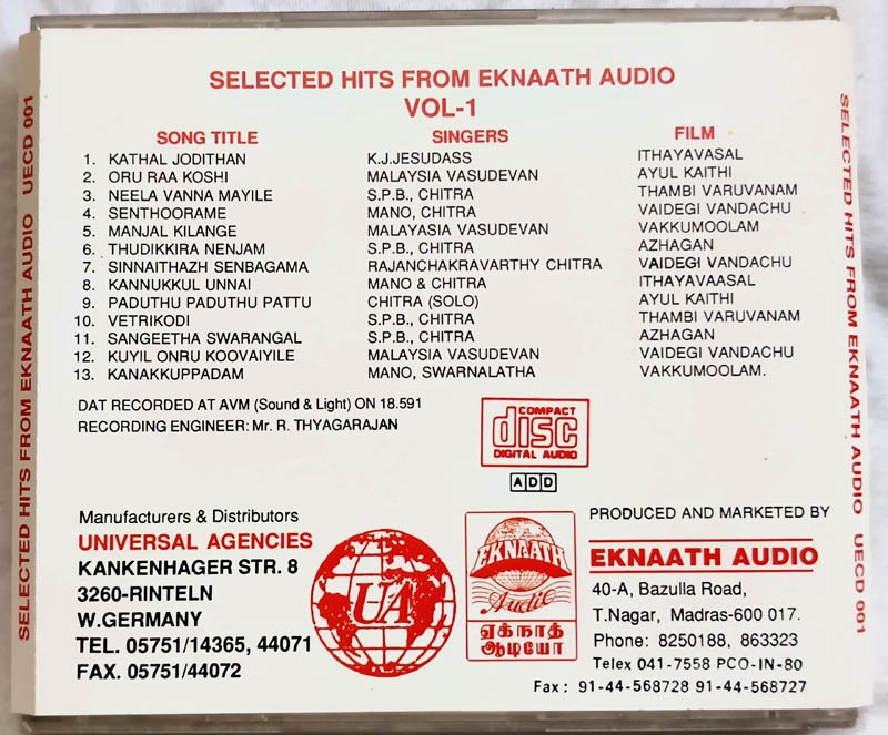 Selected Hits From Eknaath Audio Vol 1 Tamil Audio cd