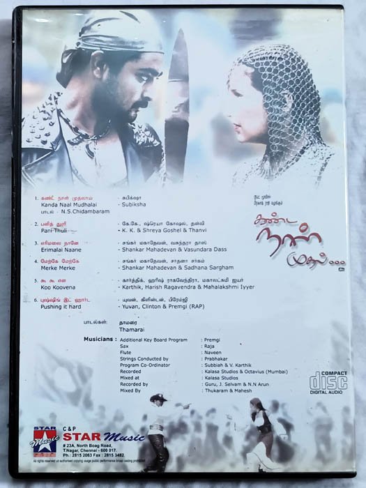 Kanda Naal Mudhal Audio Cassette By Yuvan Shankar Raja