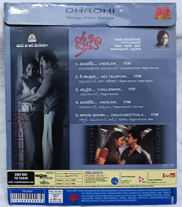 Dhrohi Telugu Film Songs Audio Cd By Harris Jeyaraj