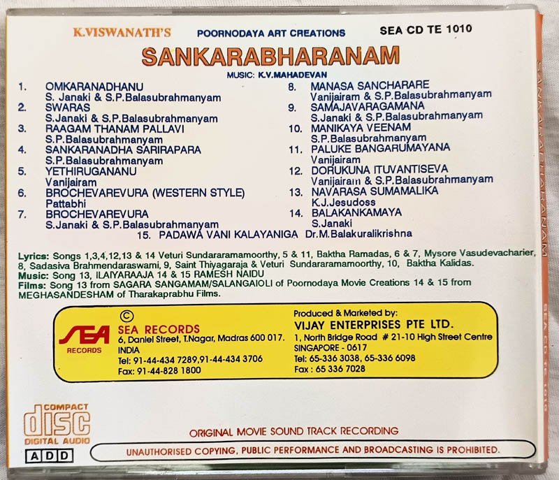 Sankarabharanam Telugu Audio Cd By K. V. Mahadevan