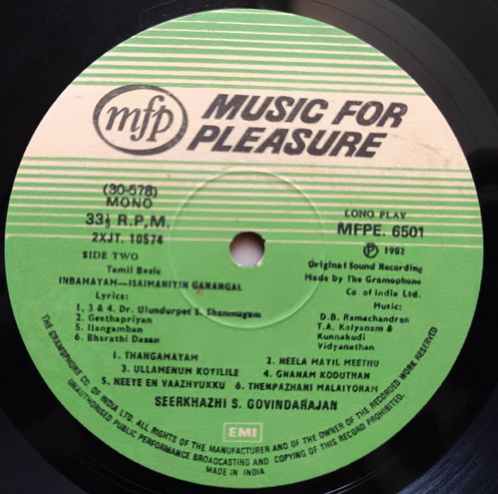 Inbamayam-Isaimaniyin Ganangal Tamil LP Vinyl Records By Seerkhazhi S.Govindarajan