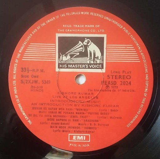 Kishore Kumar Live at Los Angeles Hindi LP Vinyl Record