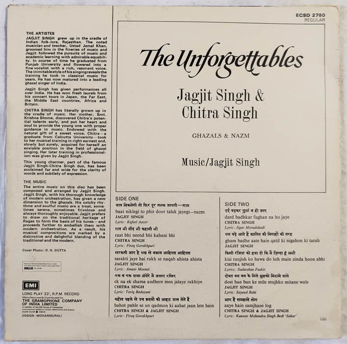 The Unforgettables Jagjit Singh & Chitra Singh Hindi Vinyl Record
