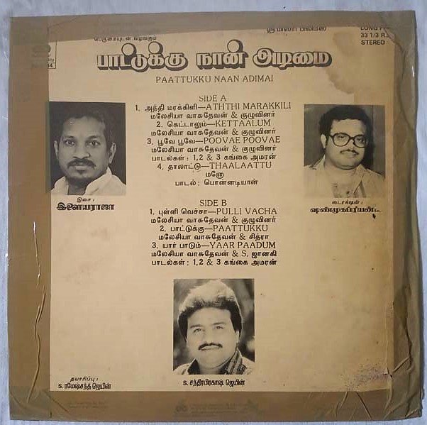Paattikku Naan Adimai Tamil LP Vinyl Records by Ilaiyaraja