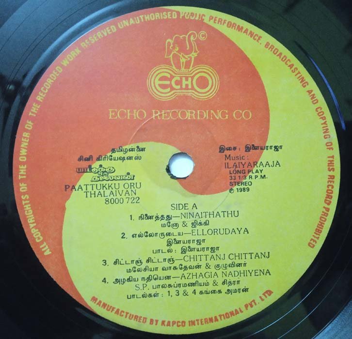 Paattukku Oru Thalaivan Tamil LP Vinyl Record By Ilaiyaraaja