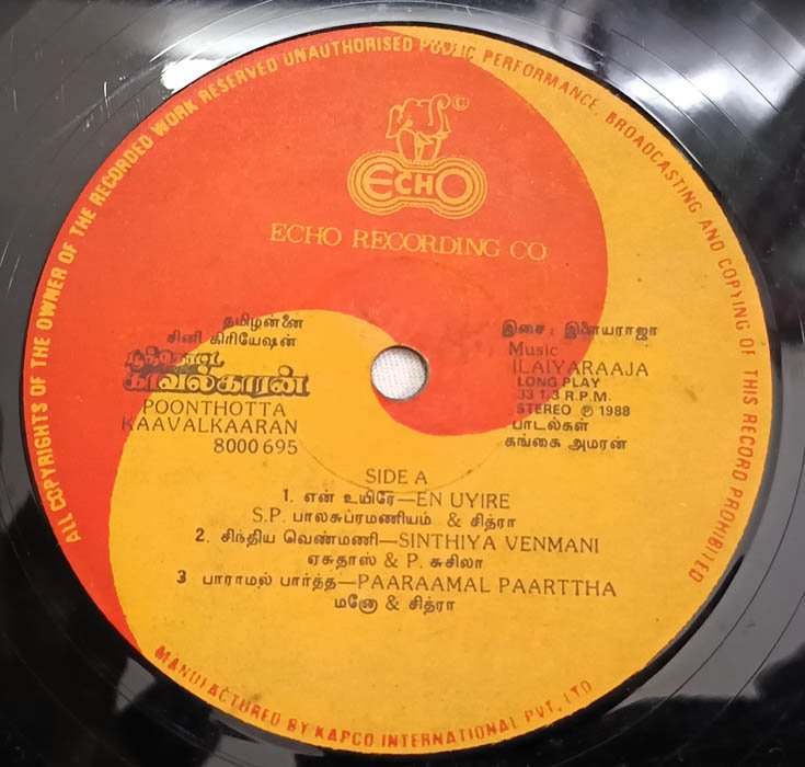 Poonthotta Kaavalkaaran Tamil LP Vinyl Record By Ilayaraaja
