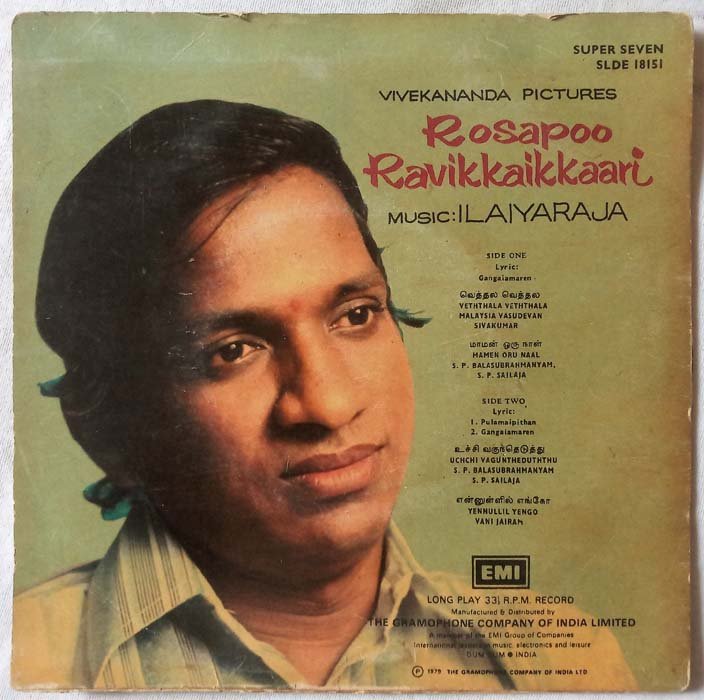 Rosaappo Ravikkai Kaari Tamil EP Vinyl Record by Ilayaraaja
