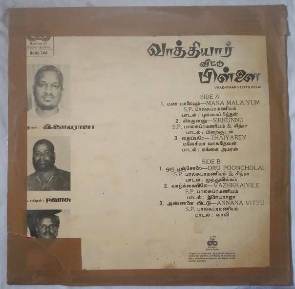 Vaadhyaar Veettu Pillai Tamil LP Vinyl Records by Ilaiyaraja