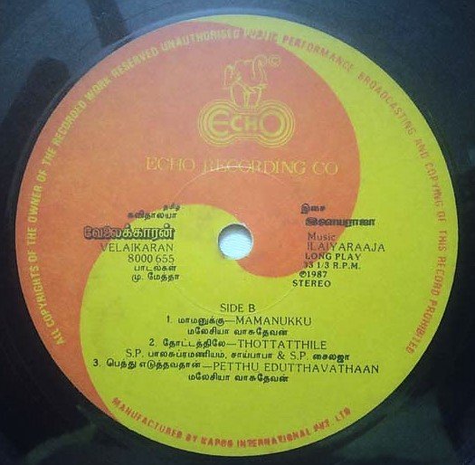 Velaikaran Tamil LP Vinyl Record By Ilaiyaraaja
