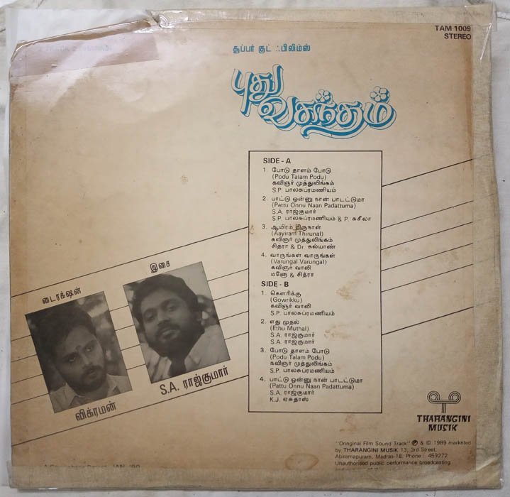 Pudhu Vasantham Tamil LP Vinyl Record by S. A. Rajkumar