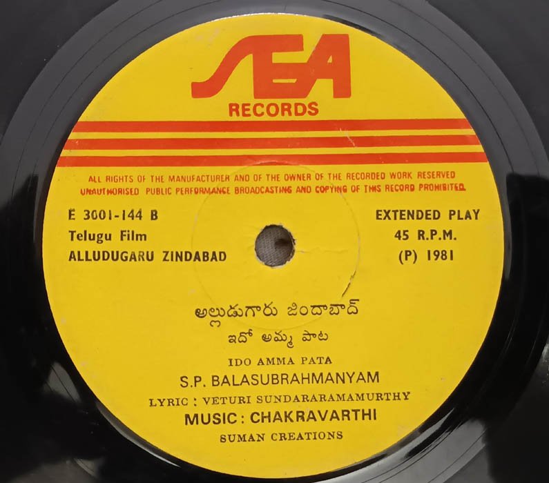 Alludugaru Zindabad Telugu EP Record By Chakravarthi