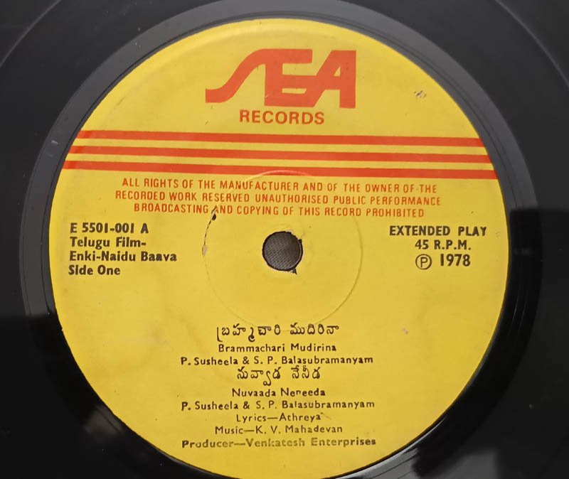 Enki Naidu Baava Telugu EP Record By K V Mahadevan